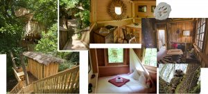 Nach einem Rundgang über das Gelände und einem köstlichen Abendessen werden wir per Elektroauto wieder zu unserer Hütte gebracht. Im unteren Bereich sind Bad und Toilette installiert, auf der oberen Plattform der Wohn-/ Schlafraum samt Terrasse. Noch ist der Wald voller Stimmen, aber langsam wird es ruhiger, weil die Tagesgäste den Park um 18.00 Uhr verlassen müssen.