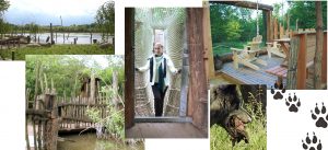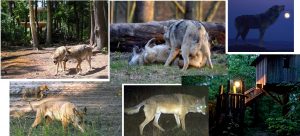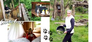 In einem französischen Wolfsreservat (120 ha) sollte es nun klappen, mehr über diese schlauen Tiere zu erfahren und sie in natürlicher Umgebung aus nächster Nähe zu sehen. Im Parc Sainte-Croix in den Lothringischen Wäldern (nahe Rhodes/ Saarburg) gibt es seit einigen Jahren die Möglichkeit von Unterständen und aus Baumhäusern aus verschiedene Tiere zu beobachten. Einige dieser Natur-Lodges sind wie Hobbit-Wohnungen halb in die Erde gebaut und innen komfortabel mit Sauna und Kamin ausgestattet. Sie tragen so klingende Namen wie „Yellowstone“, „Jack London“ oder „Trapper-Hütte“. Auf Du und Du mit dem Wolf sitzt man auf einer Terrasse hinter einer großen Glasscheibe und kann es den Wölfen überlassen, ob sie neugierig näherkommen oder sich nicht blicken lassen.
