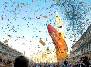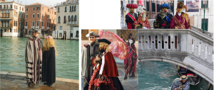 Der Karneval in Venedig spielt sich auf allen öffentlichen Plätzen und weitgehend kostenfrei ab, d.h. in den Höfen der Palazzi, in den Gassen und auf den Kanälen, wo verkleidete Menschen tagsüber und auch nachts feiern, singen, tanzen und sich vergnügen – ein Festival der Sinne.