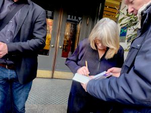 Der Zufall wollte es, daß ich mit Alice Schwarzer und Nina Gummich schon vor der Veranstaltung zusammentraf, nämlich vor dem benachbarten Hotel der Spielstätte. Begleitet von zwei Bodygards und 2-3 Mitarbeiterinnen des Emma- und Randomhouse-Verlages hatte sie für höflich fragende Autogrammwünsche selbst auf offener Straße (hier alles Männer, im Saal 90% Frauen jeden Alters) ein offenes Ohr und nahm sich sogar Zeit für kurze Gespräche. Nach wenigen zugewandten Worten wechselt sie oft schnell zum Du.